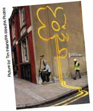しかし、誰もが彼の作品を「芸術」と見なしているわけではない。ロンドン東部の地区では町の「落書き」をすべて洗い流す決定を下しており、当局は「地元住民はグラフィティを、町の景観を汚すものと考えている」と語っている。そもそも今回の作品は、そんな当局の決定に対する仕返しなのだとか。