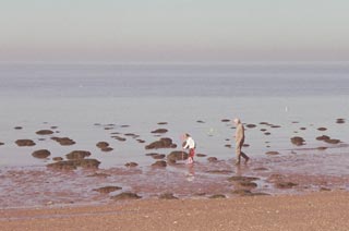 (写真3)適正露出よりもプラスに補正し、ハイキーな写真(露出オーバーになった写真の呼び方)にすることによって、柔らかい雰囲気を作ることができます。イングランド東部ハンスタントン州の海岸にて
