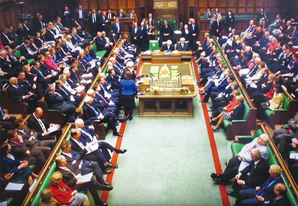 英国会では、中央の議長席の右に与党、左に野党が座る