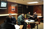1階にポツンとある小さなカフェ。トラックには面していないので、観戦には適していないと思いきや、常連っぽいおじさんたちがモニターとパンフレットを見つつ、ひたすら賭けに興じている。ここには何やら真剣な雰囲気が……。