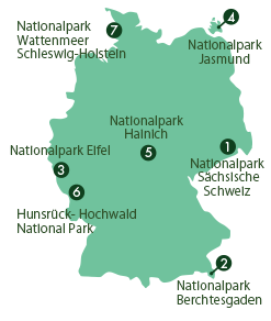 ドイツには現在、16の国立公園、15の生物圏保護区、104の自然公園、そして8000以上の自然景観保護地区があり、これらを合わせた面積は、国土の約48%に相当する。ドイツの森林は、モミの木に似ているトウヒ(25%)、松(22%)、ブナ(15%)などで構成され、7万7500種類の野生動物が生息している。ドイツには、北海とバルト海という二つの海と、ライン川(865km)、エルベ川(727km)、ドナウ川(647km)など国境を越えて流れるいくつもの河川がある。