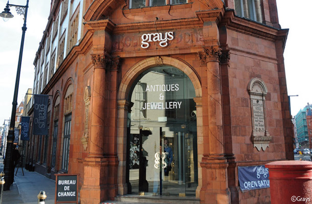 ロンドン市内中心、ボンド・ストリート駅からすぐに位置するインドア型マーケット。元々はトイレのショールームだったという建物を、1977年、ベニー・グレイ氏と呼ばれる紳士が買い取り創立した。マーケットとはいうものの、各ディーラーがブースごとに店舗を構える小売店の集合体だ。2フロアに200以上のディーラーがひしめき合い、陶器から家具、ジュエリーまで幅広い品ぞろえ。30を超えるディーラーがシルバー製品を専門に扱っており、掘り出し物に出合える確率は高し。便利な立地なので、こまめに覗いてみよう。ちなみに地階では、北部ハムステッドから始まり市内の地下を貫くテムズ河の支流を見ることもできる。