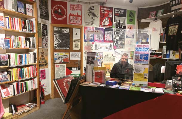 ロンドン東部、ホワイトチャペル・ギャラリー脇の暗い路地を1歩入ったところにひっそりと存在するフリーダム。まるでタトゥー・ショップのようにも見える外観だが、その実態は1886年から続くアナーキストのための機関紙「フリーダム」(2014年からはオンライン版のみ)や関連書籍を発行する出版社の経営する書店だ。1993年にはネオ・ファシスト集団から火炎瓶を投げつけられ、2013年にも放火されるなどの被害を受けたため、現在は窓ガラスやドアに鉄格子を取り付け物々しい入口になっている。