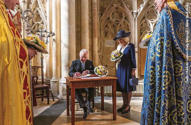 イースターの恒例行事「ロイヤル・マウンディ・サービス」でヨーク大聖堂を訪れたチャールズ国王夫妻