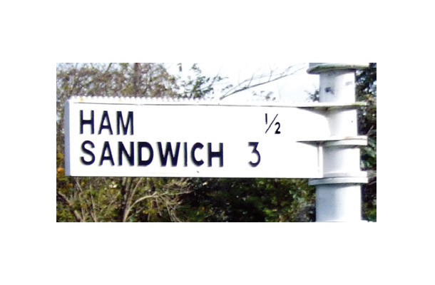 ストゥー川に並行して建つ双塔型のバービカン(城郭の外塁)が中世へと手招きする町、サンドイッチ。その名前から食べ物のサンドイッチ、もしくはそれを発明したとされるサンドイッチ伯爵に関わりがあると思われがちだが、町の歴史はそれよりもずっと古く、特に接点はない。とはいえ偶然か必然か、近隣に「ハム」という名の村落もあり、交差点に「ハム サンドイッチ」と記された標識が立っていたりして、笑いを誘っている。