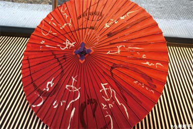 小林氏による「ありがとう」の文字が書かれた番傘
