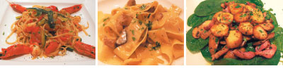 総じて、日本人好みのシーフード系のパスタが豊富で、ソースはあっさりとしたシンプルな味付けが主流。名皿が並ぶ「本日のおすすめ」は、壁のボードに記されているので、チェックするのをお忘れなく。自分の好みを 伝えれば、メニューにないものにも対応してくれることがあるので、躊躇せずフレンドリーなスタッフに話し掛けてみよう。